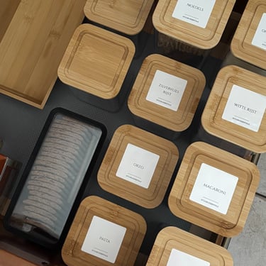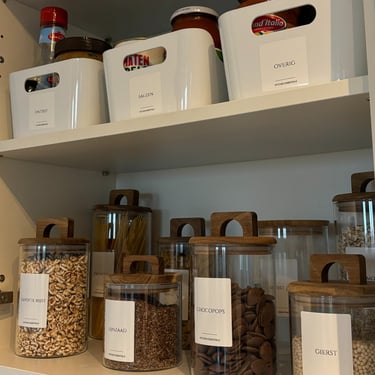 Alle items krijgen een eigen plek, met gepersonaliseerde labels en een systeem dat werkt voor jou. Functioneel, overzichtelijk en esthetisch in balans!